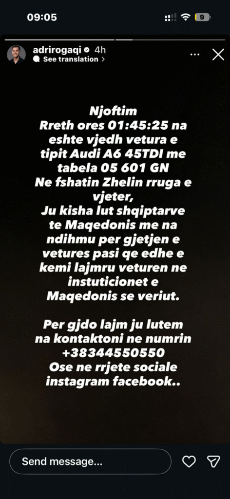 Automjeti dyshohet se është vjedhur gjatë natës, ndërsa pronarët kanë reaguar menjëherë duke njoftuar institucionet përkatëse. Çifti u ka bërë thirrje qytetarëve, veçanërisht shqiptarëve në Maqedoninë e Veriut, që nëse vërejnë ndonjë shenjë apo informacion që lidhet me automjetin, të kontaktojnë drejtpërdrejt me ta ose përmes rrjeteve sociale.