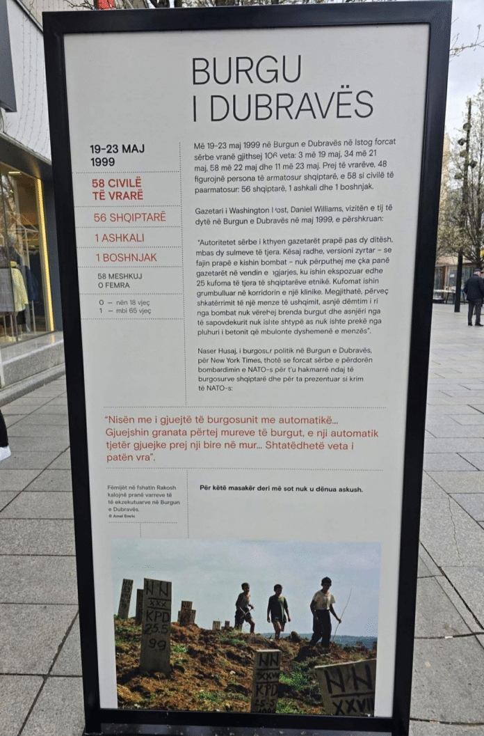Kryetari i Prishtinës, Përparim Rama, ka njoftuar pezullimin e menjëhershëm të një ekspozite të vendosur në sheshin e kryeqytetit, duke reaguar ashpër ndaj përmbajtjes së saj. Ai theksoi se ekspozita paraqet një version të pasaktë dhe të papranueshëm për ngjarjet në Burgun e Dubravës, duke e cilësuar këtë si cenim të dinjitetit të qytetarëve dhe fyerje ndaj viktimave. Njëkohësisht, Rama ka kërkuar përgjegjësi politike dhe institucionale për mënyrën e miratimit dhe financimit të kësaj ekspozite.